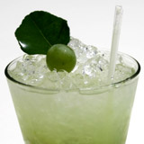 Garnish with a grape and a Kaffir lime leaf.